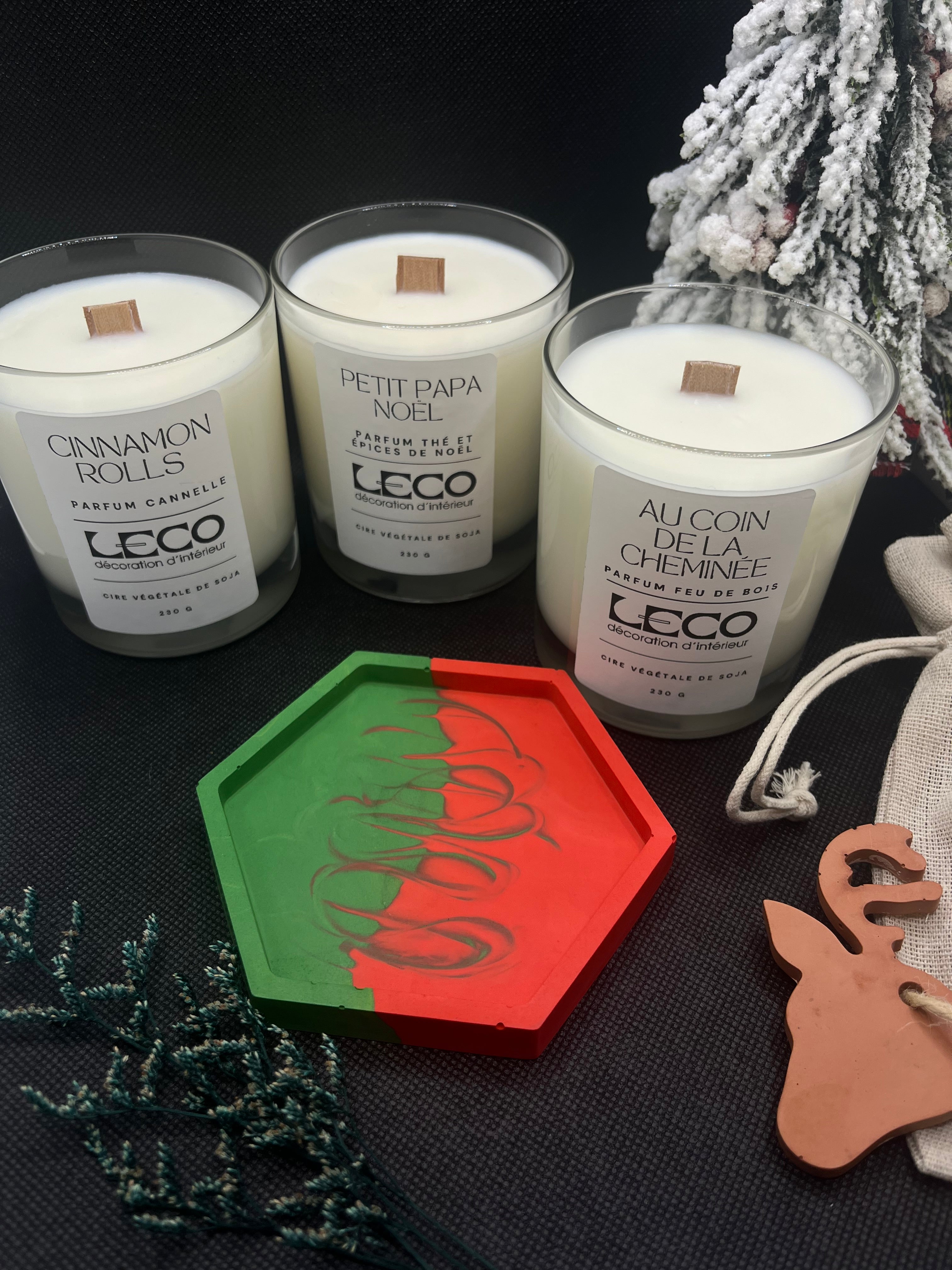 Vous trouverez ici des éléments de décoration fait mains en jesmonite, ainsi que des bougies et fondants parfumés confectionnés à base de cire végétale